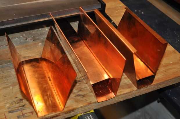 Compré 3 hojas de cobre 2 X 10' para mi proyecto. Había medido hasta todos los requisitos de mi pieza, hice algunos diseño de todas las piezas y determinó que esto sería suficiente, con un poco sobrante y desperdicios mínimos. Tengo 16oz cobre en una tienda local del metal de hoja. Utiliza para techar y hacer varias cosas. Tenían 4' X 10' hojas que cortan por la mitad para mí, mantener la una 2' X 10' pieza como que es un tamaño estándar que utilizan, sólo me cobra por hojas de 1,5 y sin cargo para los cortes. Era un poco más de $300, que es de $5 y un poco por pies cuadrados. Por lo tanto estoy en todo esto ahora para aproximadamente $700-750.