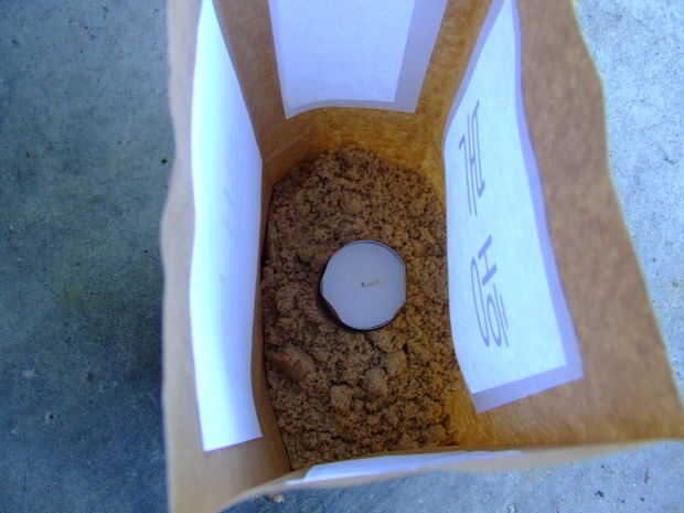 he utilizado luces estándar té y poner unos dos a tres tazas de juego de arena en la pottom de las bolsas.