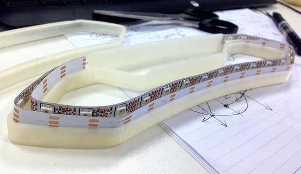 Soldar los cables a la tira LED digital y luego inserte la tira en la parte principal.