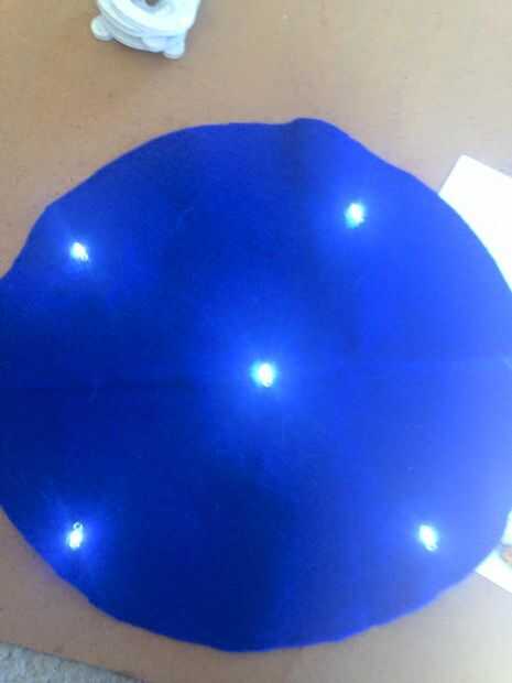 6. diseñar Letras y luces LED en la parte delantera del círculo de la manera que desea que aparezcan en el producto acabado. Todavía no pegue Letras: esto puede interferir con la costura en este punto. Marque en la parte posterior del círculo con marcador lavable donde se colocará los LEDs para guiar la costura.