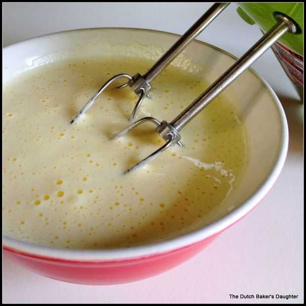 Colocar la leche y la nata en un cazo de tamaño mediano. Calor a fuego medio/bajo hasta que la mezcla a fuego lento. Lentamente bata la mezcla de huevo en la crema caliente y continúe calentando hasta que viene otra vez a hervir, batiendo constantemente. Reducir el calor y hervir por dos minutos. Retirar del fuego y enfriar durante al menos 2 horas o durante la noche.