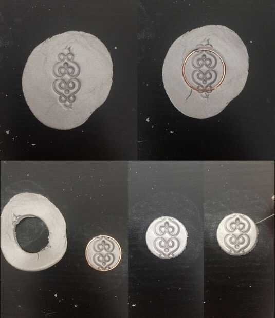 Empuje el anillo en el medio y sacar la arcilla sobrante. Usted puede ir con un cuchillo demasiado. Por último, limpie los bordes con la aguja y suavizar con la punta de bola.