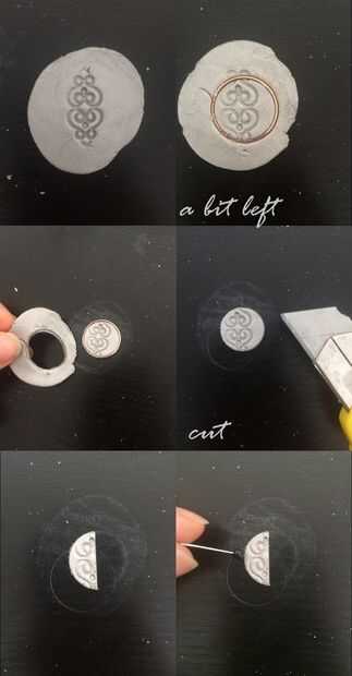 Repita el primer paso para la media luna pero mantener la forma un poco en el lado izquierdo. Luego córtalo por la mitad con el cuchillo. Limpie los bordes duros con la aguja.