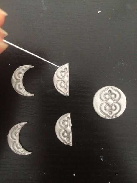 Usando la aguja crear un agujero en la parte superior las formas y hacerlo más grande con la punta de un lápiz o un palillo de dientes. Si desea que puede dejarlo sin pintura, se ve genial en mi opinión :)