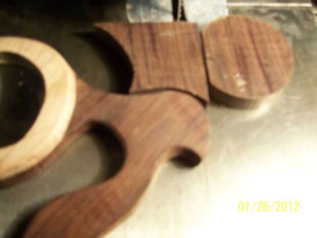 elegí una madera más oscura para el mango para darle un contraste. Tenía algunos restos de duramen africano en el depósito de chatarra. ¡ ADVERTENCIA! Tenga cuidado si utiliza este tipo de madera. El polvo es altamente irritante a la piel y membranas mucosas. Me enteré de la manera más difícil. Había hinchado ojos. rellenos hasta nasales, comezón en la piel, sólo para empezar. Duró más de una semana.  I máscara para arriba y utilice un ventilador para sacar el polvo de la habitación. Gafas, guantes y ropa apretada demasiado! Pensé que yo pudiera evitar sin respiración por un corto tiempo durante el corte, pero el polvo es malvado y consigue de alguna manera!! ADVIÉRTASE TANTO!!!!!!