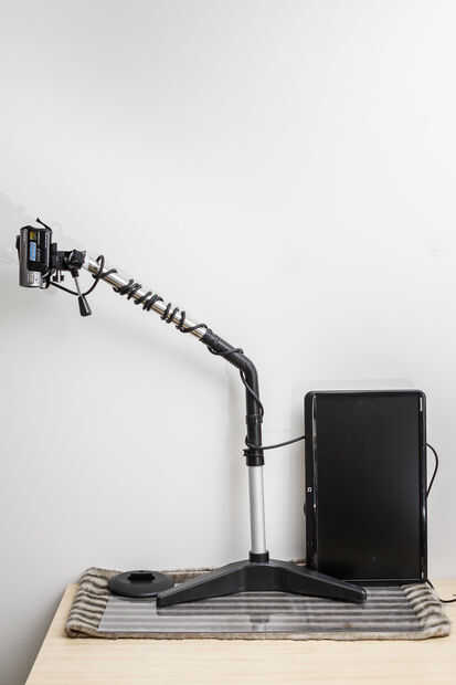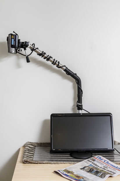 Ahora tienes una lupa electrónica simple que tiene un diseño compacto, es más ligero mover, fácil de desmontar y puede girar fuera del camino cuando sea necesario.
