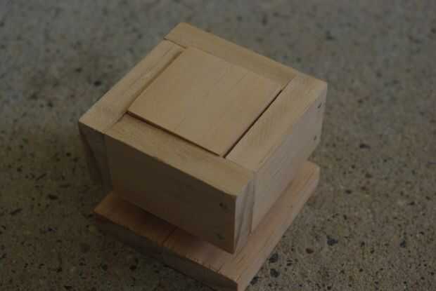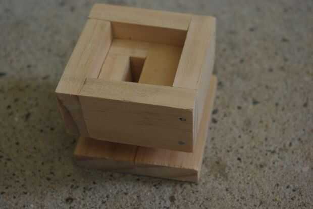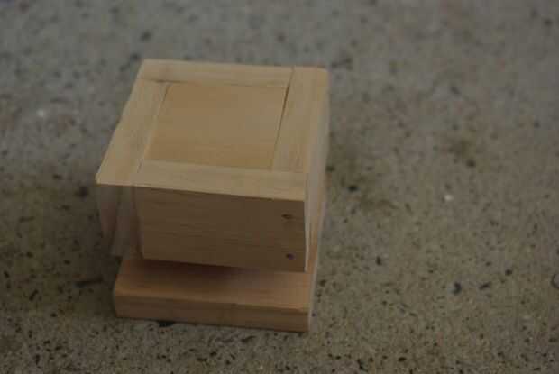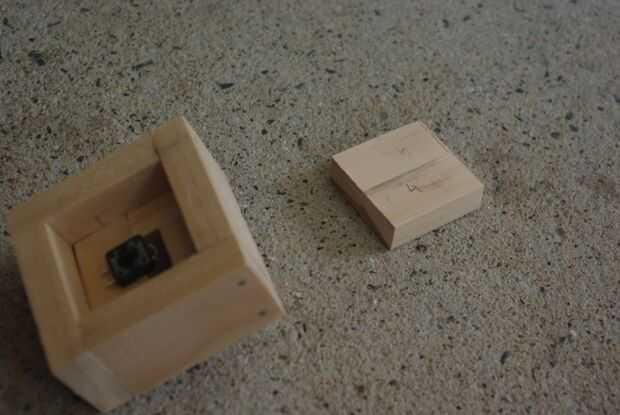 2. Se reúnen el pulsador que está utilizando y todas las piezas de madera y luego poner el pulsador en la parte que acaba de hacer - poner ahora el ontop plaza exterior de la pieza que acaba de hacer y ranura a través, ahora la pieza de madera de 'botón' y empuje hacia abajo en la ranura y alinearlo para que quede a ras con la parte superior. Marca dónde están los lados de madera exterior.