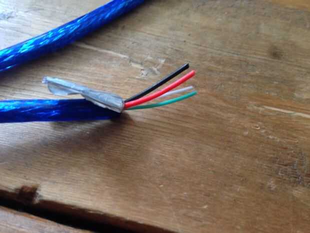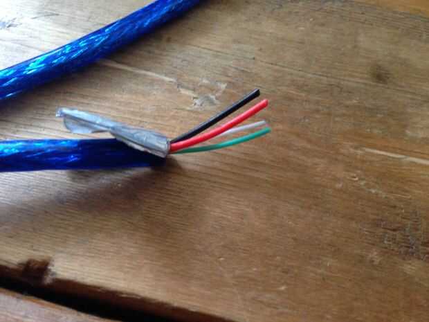 - Empalme el interior cables - deben ser rojo, negro, blanco y verde