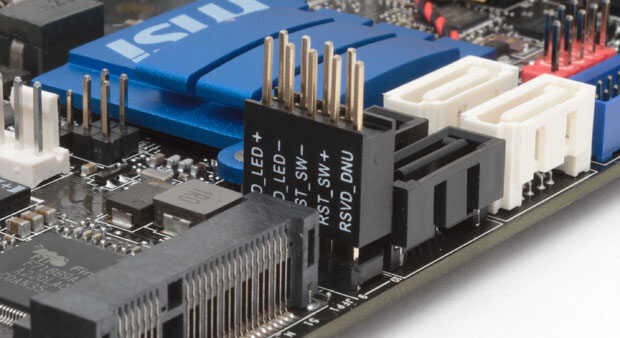 Este es un paso super sencillo: primero debes localizar la parte de la placa base que tiene lo que se conoce como el conector del panel frontal.