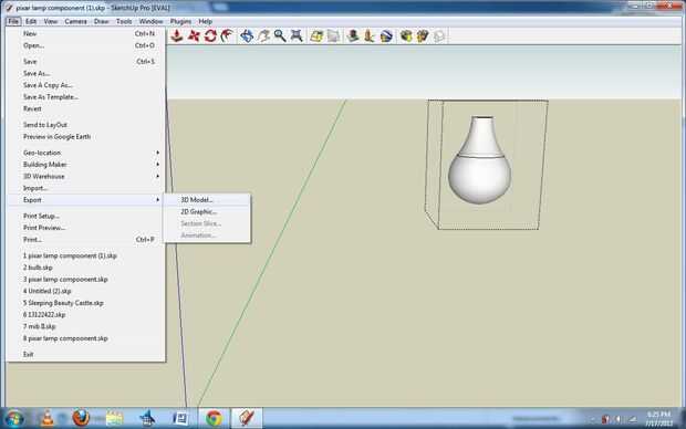 En primer lugar, necesitas la versión profesional de Google Sketchup. La razón de esto es que la versión pro es la única manera que usted puede exportar el archivo como un. OBJ, que será crucial para su conversión en 3D para imprimir. Archivo STL. Usted puede descargar un mes varias larga versión del sitio web de Google aquí, gratis: http://sketchup.google.com/product/gsup.html