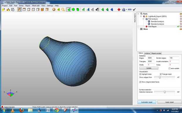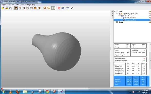 Luego, usando una red mezcla software (yo usé NetFabb Studio) y reparación de archivos 3D tomar archivo sketchup e ir a parte -> Exportar ->. STL para convertirlo en un. Archivo STL. Asegúrese de que el proyecto es apretado del agua de otra manera que no se imprimirá.