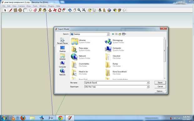 Después, abrir el modelo de sketchup 3D creado o descarga desde Google 3D warehouse. Entonces, ir a archivo -> Exportar y seleccione. OBJ