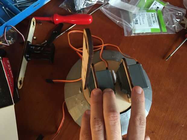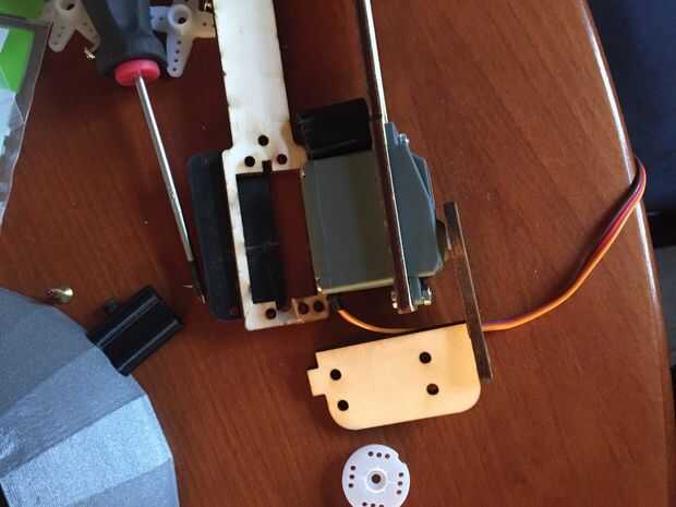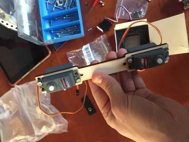 Añadir los servos en la parte superior del brazo y atornille juntos. En este sólo tienes que seguir el común sentido, las piezas cortadas laser son el mejor manual.