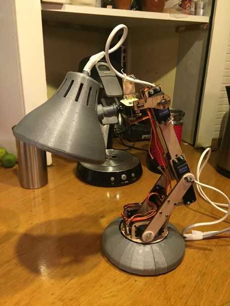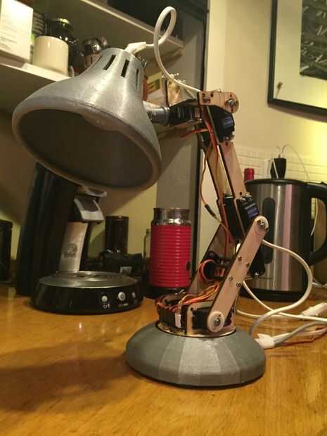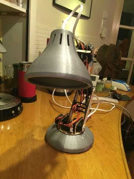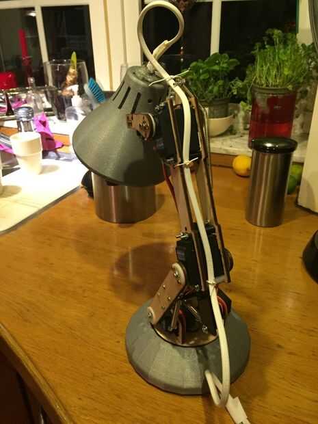 Mis servos no lo sostuvo y causaron la lámpara al caer. Os adjunto tres muelles para mantener la lámpara más estable, pero es todavía no perfecto. Si alguien tiene una mejor solución, por favor hágamelo saber.