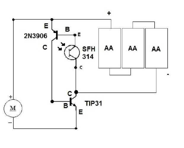El emisor del fototransistor es el cable más largo. El cable más corto del fototransistor debe soldarse al cable negativo (negro) batería titular.
