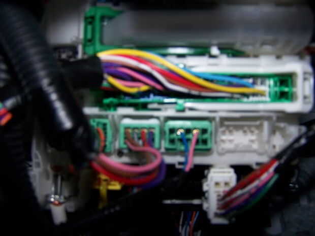 Por último, tenemos que conectar el cable de tierra de la luz al terminal de tierra el LED, que añade al controlador de vivienda. Esto es donde utilizamos la t-tap. Los cables de luz de domo pueden encontrarse en la parte inferior del panel de fusibles. Dos cables, uno rosa, uno cian, deben ser los sólo dos cables en un conector verde pequeño. Desconecte el conector para facilitar el acceso. Sujete el conector t-tap en algún lugar del cable cian. A un extremo de un pedazo corto de alambre, engarzar un conector de hoja. En el otro extremo, conecte el enchufe o el adaptador que se acoplará con el jack o conector instalado en el controlador de la vivienda. Luego enchufe el cable para realizar esta conexión.