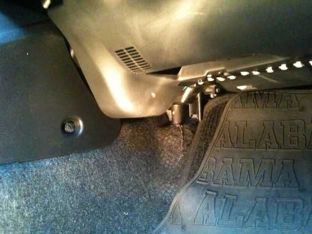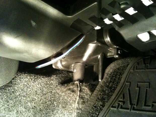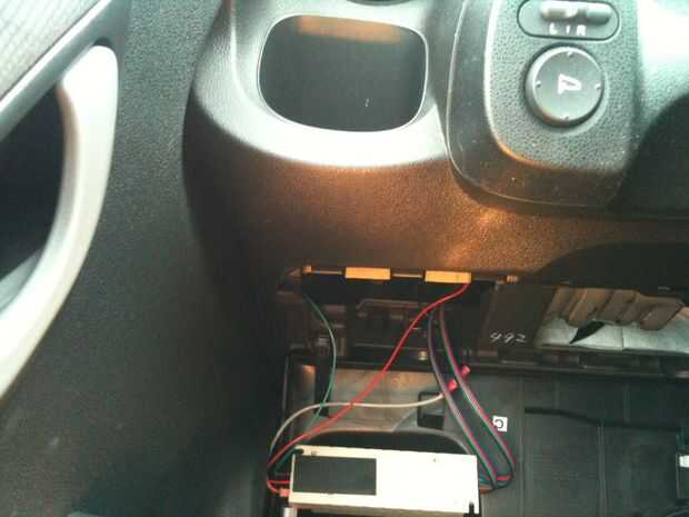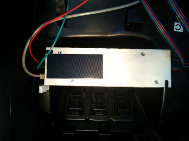 Con todos los cables necesarios y ahora, usted puede conectar a los terminales apropiados del regulador/controlador. Esto a su vez se montará en la parte inferior del sostenedor de taza izquierda del lado del conductor. Si se llega a en la cavidad de la caja de fusibles en la parte superior debe ser capaz de sentir debajo del sostenedor de taza. Esto proporciona una superficie plana a la que puede colocarse el regulador/controlador. Cortar un trozo de velcro (gancho o bucle, no importa) y pegarlo en la parte inferior de lo portavasos. Pegar otra pieza de la misma longitud pero frente a tipo de cierre en la parte posterior de la caja del regulador/controlador. Debe colocarse hacia el lado izquierdo de la carcasa. Ahora el regulador/controlador está montado (boca abajo) por simplemente juntar las dos superficies de velcro.