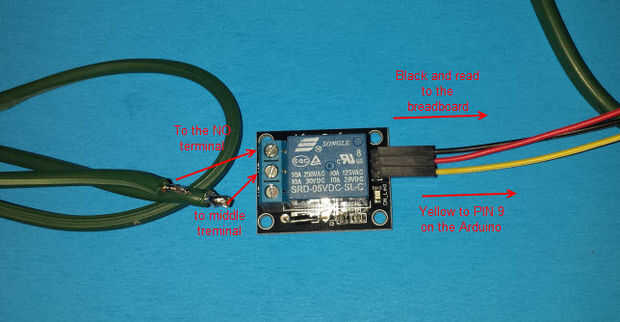 Paso 5: Conecte el relé de potencia para el Arduino, protoboard y el cable de extensión