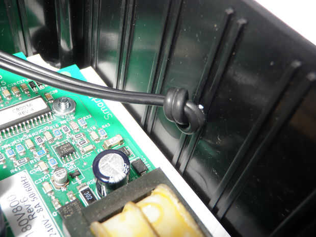 Pasar un pie más o menos el cable de la lámpara a través del orificio de 7/32" y un nudo.