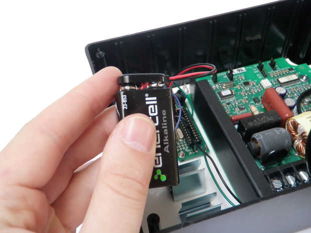 Conecte las dos pilas de 9V e insertarlos en el recinto.