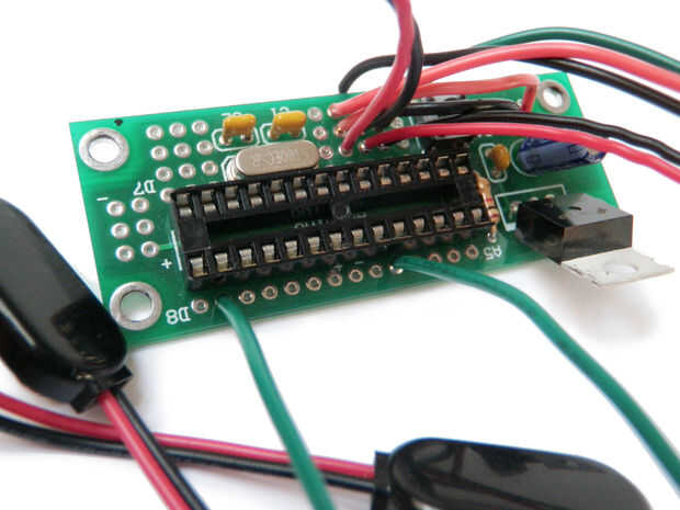 Mirando los cables de los clips de la batería, conecte el cable rojo solo a la entrada de V en la placa de proyecto Arduino +. A continuación, conecte al cruce de cables rojo y negro a la entrada de tierra de la placa de proyecto Arduino.