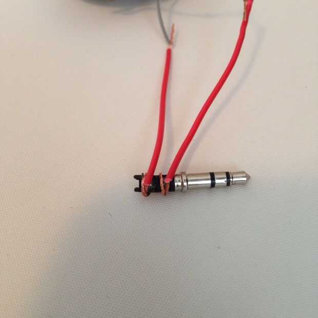 Envuelva los dos extremos de los cables en estas partes de la toma de auriculares. Necesitan ser tocarlos.