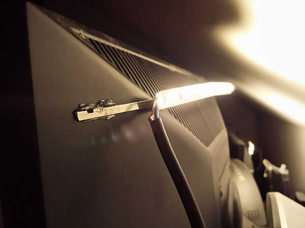 un cable USB viejo, poco resistente y después de unos días o semanas este blob de silicona transparente finalmente perdió su olor y le puse 2 lento cambio de LEDs RGB de superbrightleds.com hizo una agradable luz de ambiente que no es brillante a cor