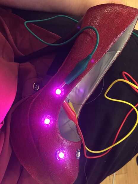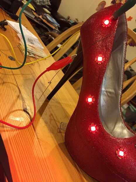 Use los clips de cocodrilo conectar el filamento ahora conectado de la NeoPixels a su Flora y ejecutar una prueba de mechón básica a través de su Adafruit engañó a Arduino. Es en su contexto.