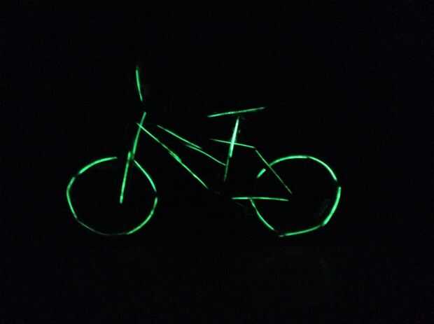 Cinta los palillos del resplandor en la bicicleta más captura la forma de la bicicleta con los palillos del resplandor mejor se verá después de que su hecho disfrutar de tu moto de luz