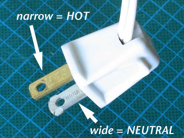 ** Nota: La punta más angosta hará contacto con el conductor caliente en la toma de corriente, mientras que la patilla más ancha hará contacto con el conductor neutro en la toma de corriente.
