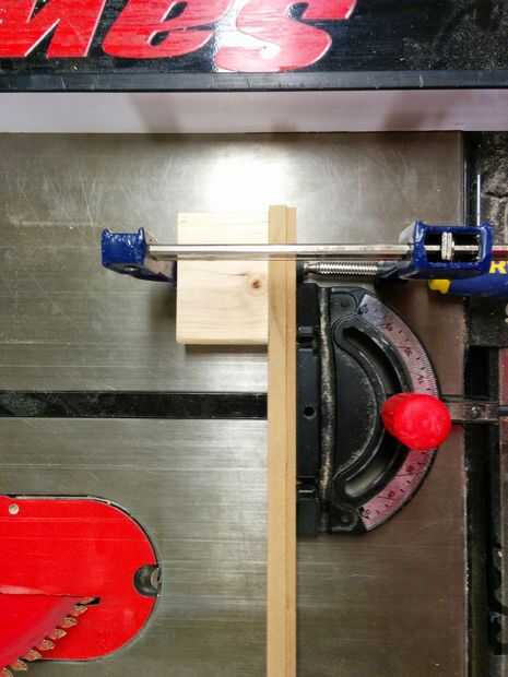 El segundo paso es la es a poner la mesa de la sierra a 45 grados (se muestra en la imagen. Después de esto, crear una plantilla para asegurarse de que los cortes son precisos y que todos los lados tienen la misma longitud. Un ejemplo de una buena plantilla se demuestra en las imágenes de arriba