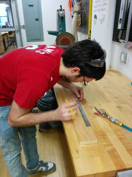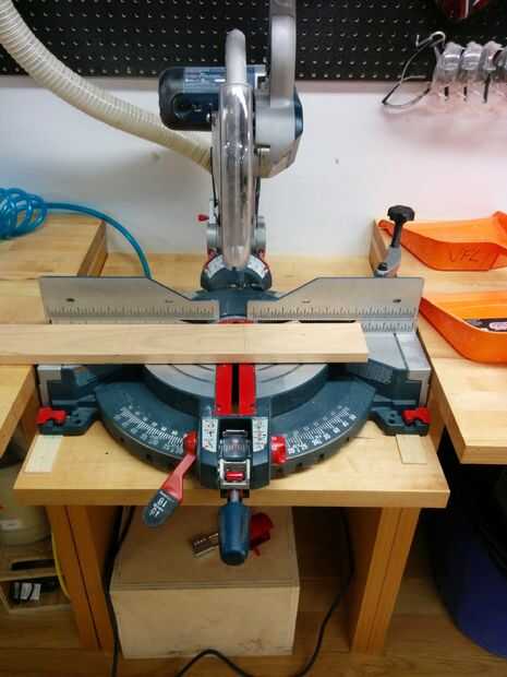 El primer paso es medir las piezas y cortar las piezas de roble usando un inglete vio.