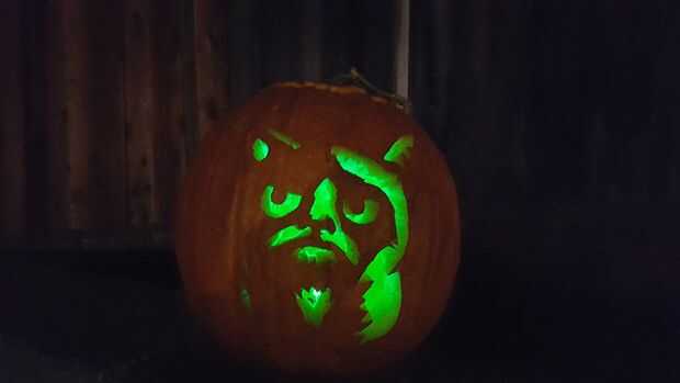 No dejes que la tonta cara te engañe, este hombre feliz es una de las calabazas más inteligentes en el parche. La calabaza de maché de papel gigante está iluminada interior con el nuevo flujo inteligente bombilla de luz LED. Flujo es una equivalente,