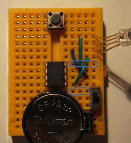 crear patrones de luz en tus alas de hada con un microcontrolador llamado Schemer. Este es un ejemplo simple con 10 cubreluz; el Schemer puede encender hasta 20. También puede obtener otro componente llamado Max que permite agrega batería adicional p