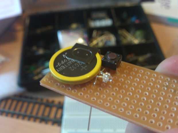 El siguiente bit es a prueba de todo a la placa perforada para encontrar el arreglo más pequeño de las piezas; Me las arreglé para llegar hasta un pedazo de 30x30mm.