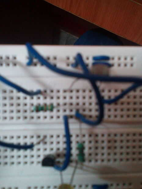 Conecte un cable desde el lugar donde el resistor (marrón-negro-naranja-oro) y el ldr está conectado, a la pata del media del transistor