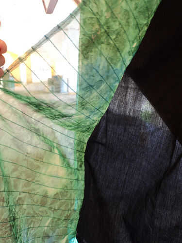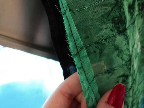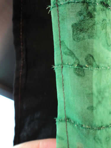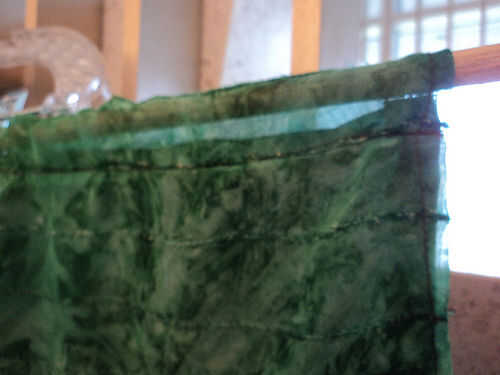 Me cosieron los bordes cortos de ambos tejidos y había dobladillado los otros lados por lo que no sería hilos sueltos. Luego cosí un canal en la parte superior de una barra de cortina ir a través. Por último, cosí dos costuras por el centro de la cortina alrededor de la mitad una pulgada aparte de un cable pasar y tirar de la cortina abierta.