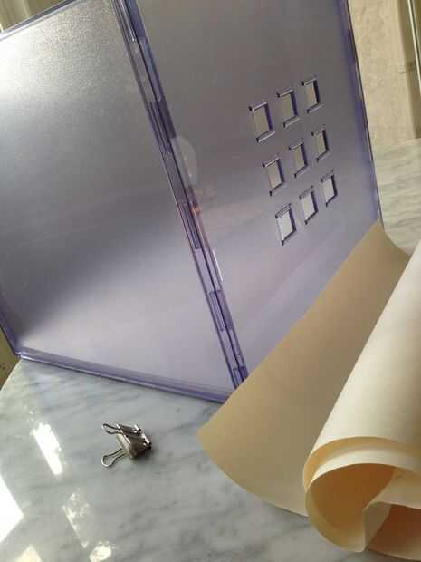 Para hacer esta caja ligera rápida y fácil todo lo que necesita son una caja de Ikea Lekman transparente (u otra caja translúcida) un pedazo de dibujo papel de 14 pulgadas (35 cm) por 28 pulgadas (70 cm) y una carpeta clip blanco.
