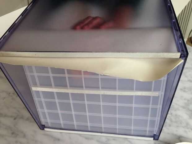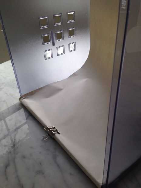 Deslice el borde doblado del papel bajo el borde frontal si la caja y fijarla con el clip de la carpeta.