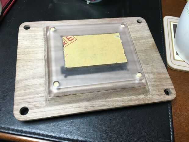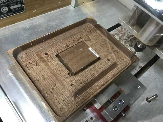 Después de que cada uno de los componentes del caso ha exportado a archivos .stl puede hacer cada uno dependiendo del equipo que tienes. Mina había molido en un carburo 3D Nomad Pro fuera de diversos materiales. El "bottom_plate" es de aluminio, es el "acrylic_window" (usted lo adivinó) acrílico, "bottom_layer2" es el roble rojo y las otras partes son de nogal.