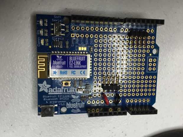 Un paso crítico es emparejar el escudo de bluetooth a su computadora antes de cerrar todo para arriba en el caso. Es posible hackear un poco para sacar el botón de sincronización, pero no hacerlo. El escudo de bluetooth permite a un equipo sincronizado para volver a programar el Arduino sin cables.
