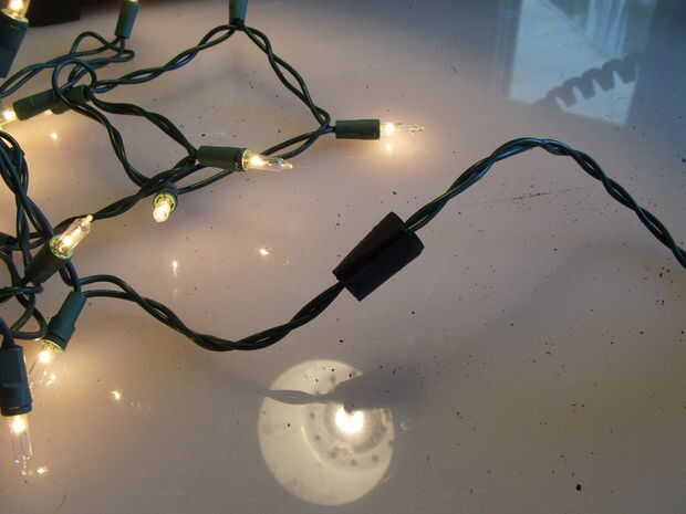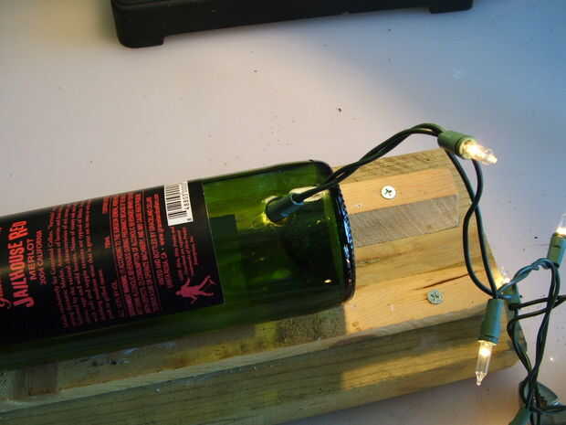 Inserte la primera bombilla en la cuerda en el orificio de la base de la botella. Continúan las luces de la alimentación y el cable a través del agujero, uno a la vez. En las luces segunda y posterior doble el bulbo contra el cable y empuje suavemente a través del orificio. Tenga cuidado de no nick el cable.