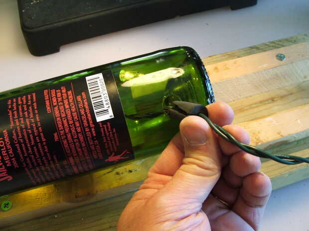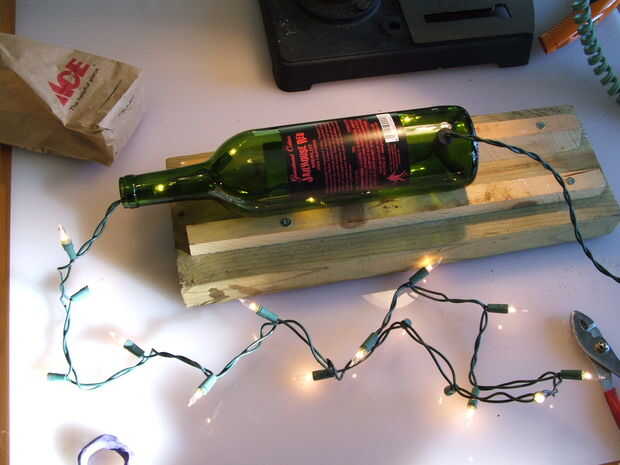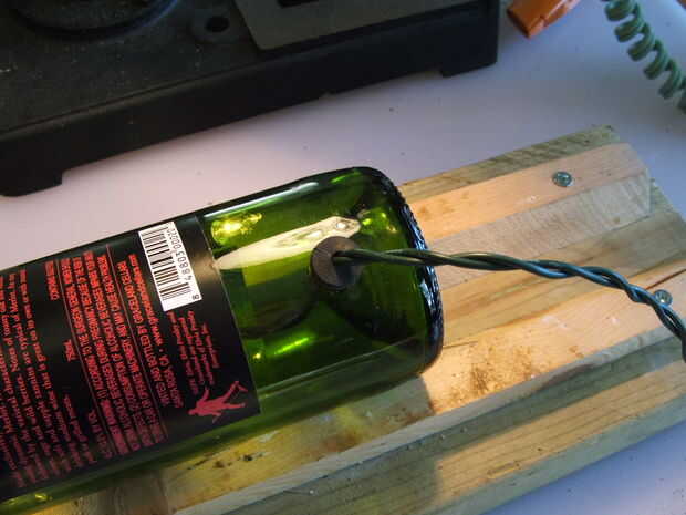cumplí un desecho base cereza y una botella de tequila de perdón... scratch que, vieja botella de vino, una botella de luz.Se calienta la habitación y es un gran uso de lo contrario desechar artículos.Ah, y necesito comprar un vidrio de perforación p