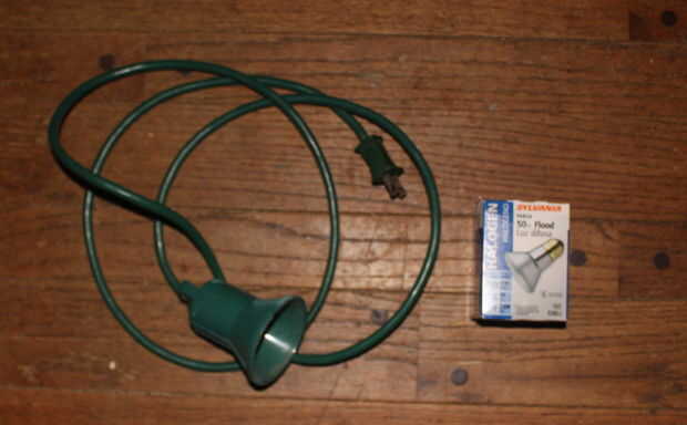 Soporte luz de inundación al aire libre (usted puede conseguir en Ferreterias o tiendas grandes de la caja por unos 10 dólares) ya tenía éste.
