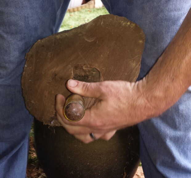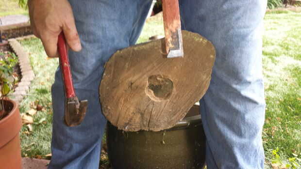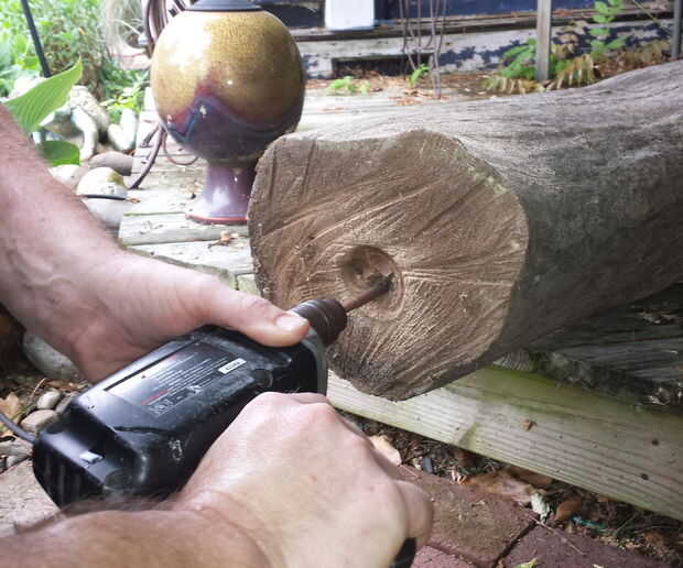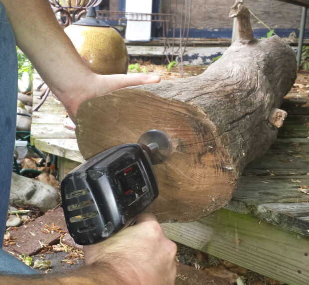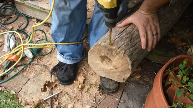 Una vez que tenga el agujero para la luz que se necesita hacer un agujero para que la luz brille a través. Para esto solo utilizado una pala de 1 pulgada de bits con un bit extender a perforar hasta donde estaba el agujero natural. Dependiendo de cuánta madera se debe perforar a través de este puede tomar algún tiempo.