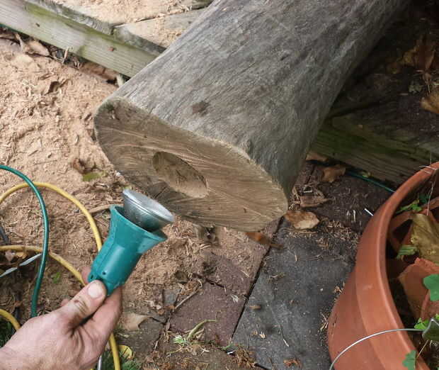 Ahora su lista para instalar la luz. Inserte la inundación lite y pase el cable a través del recorte que ha realizado. Prueba de la luz para asegurarse de que está satisfecho con la apariencia.