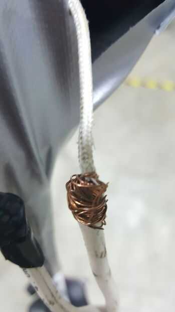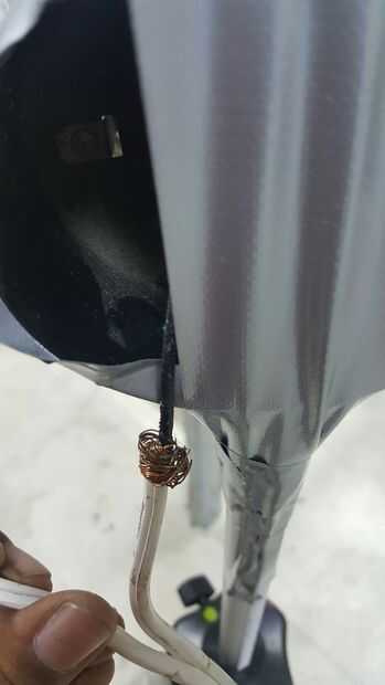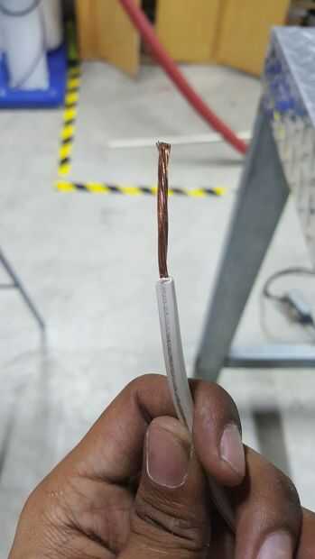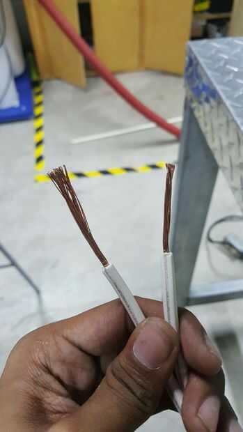 Aquí tomé los terminales del alambre y pelé lo el de la entre suficiente para tener una buena unión cable del reflector y el alambre de alimentación.
