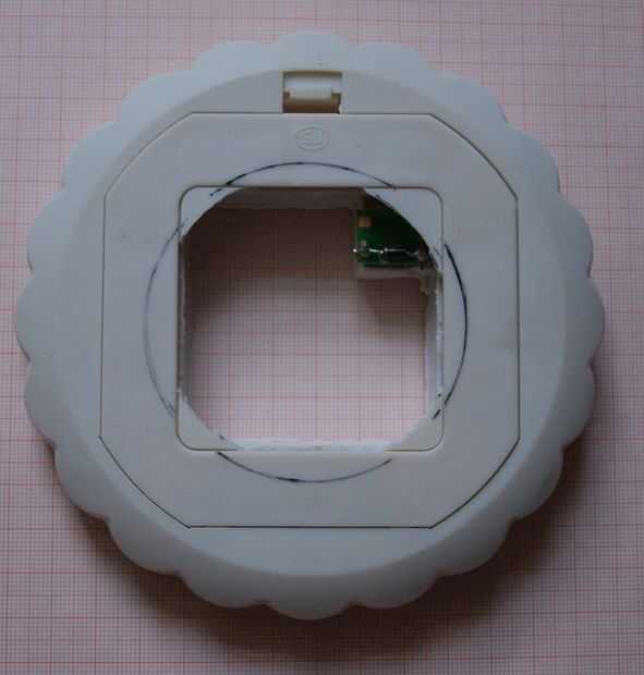 Para la cubierta de la batería cuando se montan en el objetivo que tenemos que hacer algunos fresado más. Otra vez usar el parasol como una plantilla, ahora la dimensión externa y empezar a moler alrededor de la cubierta de la batería.