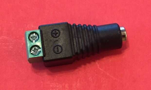 • Un conector terminal para la tira de LED - 2,1 x 5,5 mm. Ese enlace es para un atenuador que viene con un adaptador, pero usted puede comprar los adaptadores por separado. El regulador es muy recomendable, ya que permite controlar fácilmente el brillo exacto.