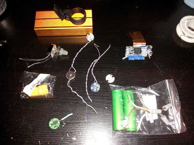 Un caso de alumimum para los leds y baterías (tengo uno en ebay que fue apenas el tamaño correcto para $7)